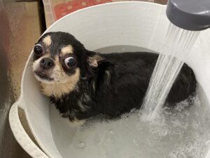 毎月オゾンマイクロナノバブル浴+炭酸泉浴のシャンプーコースをご利用のスムースチワワのサンディちゃんです