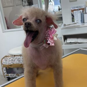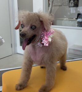 ⒈5ヶ月毎にオゾンマイクロナノバブル浴のカットコースをご利用のT・プードル11歳のショコラちゃんは、体8㎜全バリ顔バリ四肢細くのご注文です。