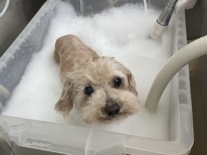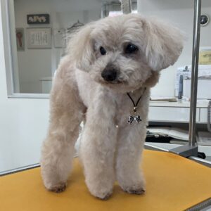 毎月オゾンマイクロナノバブル浴のカットコースをご利用のT・プードルの18歳ショコラちゃんは、体5㎜ のテディベア四肢太くのご注文です。