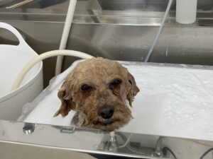 2ヶ月毎にカットコースをご利用のトイプードルのシンバくんは、体3㎜マイアミ足先バリカンお顔はテディベアのご注文です