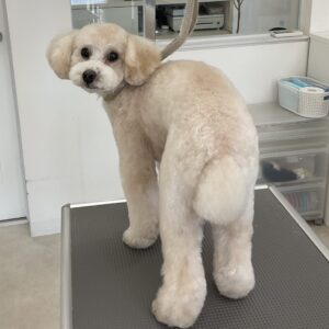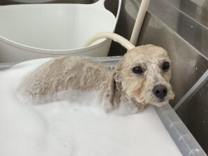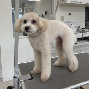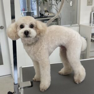 2ヶ月毎にオゾンマイクロナノバブル浴+炭酸泉浴のカットコースをご利用のトイプードルのジュノンくんは、体10㎜テディベアのご注文です