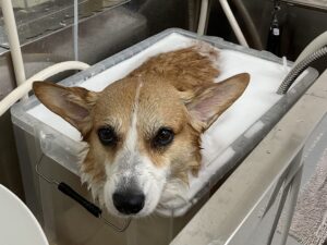 毎月オゾンマイクロナノバブル浴のシャンプーコースをご利用のコーギーのチビちゃんです