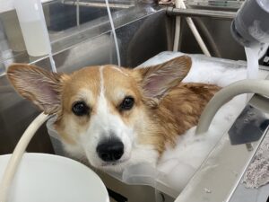 毎月オゾンマイクロナノバブル浴のシャンプーコースをご利用のコーギーのチビちゃんです