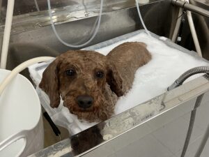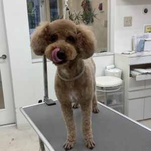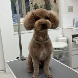 ⒈5ヶ月毎にオゾンマイクロナノバブル浴のカットコースをご利用のトイプードルのチョコくんは、体5㎜テディベア四肢細くのご注文です