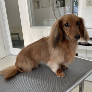 シャンプーコースをご利用のミニチュアダックスのチョコちゃんです