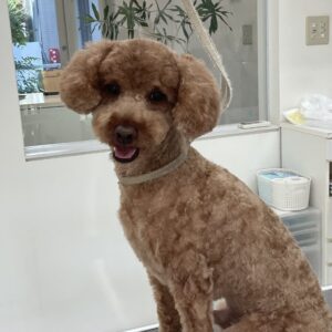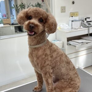 ⒈5ヶ月毎にオゾンマイクロナノバブル浴+炭酸泉浴のカットコースをご利用のトイプードルのテコくんは、体5㎜全バリお顔は短くテディベアのご注文です。