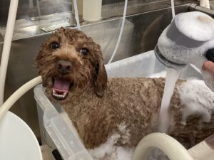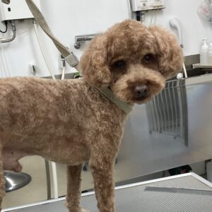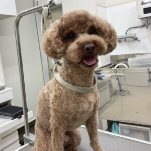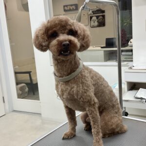 2ヶ月毎にオゾンマイクロナノバブル+炭酸泉浴のカットコースをご利用のトイプードルのテコくんは、体5㎜全バリお顔も短くテディベアのご注文です