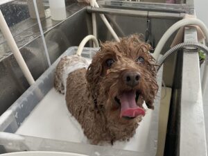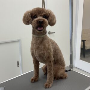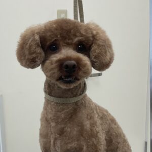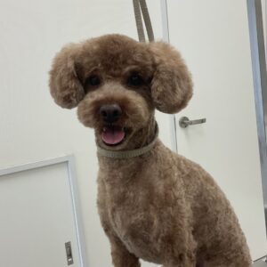 2ヶ月毎にオゾンマイクロナノバブル浴+炭酸泉浴のカットコースをご利用のトイプードルのテコくんは、体5㎜全バリお顔も短くテディベアのご注文です