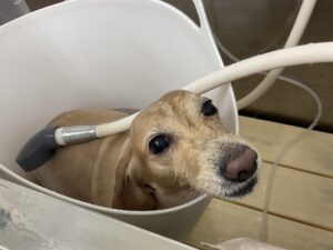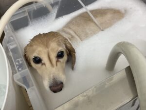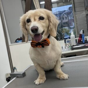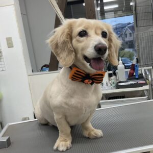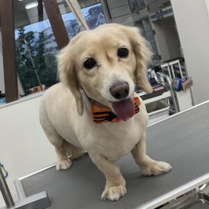 2ヶ月毎にオゾンマイクロナノバブル浴+炭酸泉浴のカットコースをご利用のミニチュアダックスのプリンちゃんは、体2㎜全バリのご注文です
