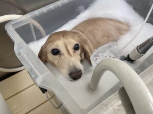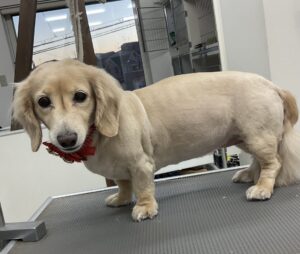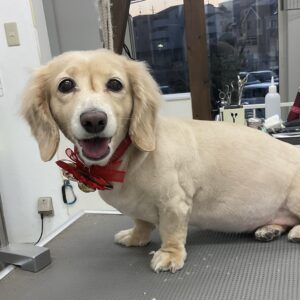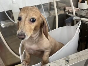 2ヶ月毎にオゾンマイクロナノバブル浴+炭酸泉浴のカットコースをご利用のミニチュアダックスプリンちゃんは、体2㎜全バリのご注文です