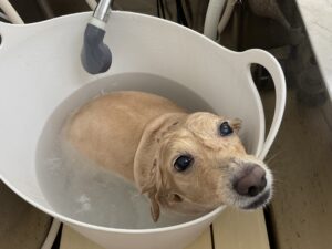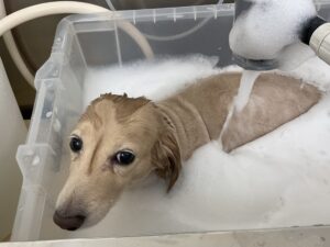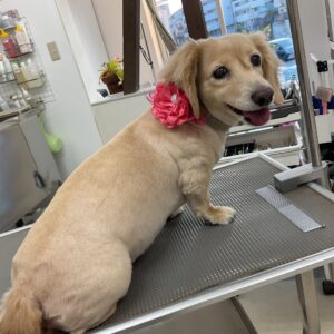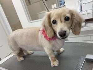 オゾンマイクロナノバブル浴+炭酸泉浴のカットコースをご利用のミニチュアダックスフンドプリンちゃんは、体2㎜全バリのご注文です