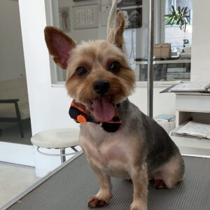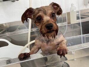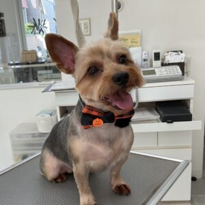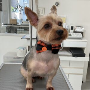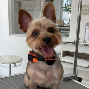ご新規でご来店のヨーキーのポテちゃんは、体3㎜全バリお顔も短く丸くのご注文です。初回サービスのオゾンマイクロナノバブル浴のお試しで殺菌抗菌消臭作用と毛根の奥の老廃物を除去しますのでサラサラ艶やかな仕上がりです