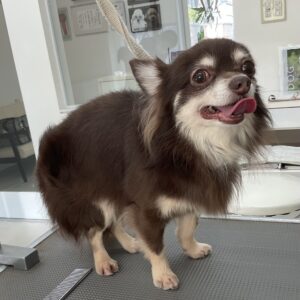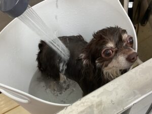 オゾンマイクロナノバブル浴+炭酸泉浴のシャンプーコースをご利用のチワワのマロンくんです