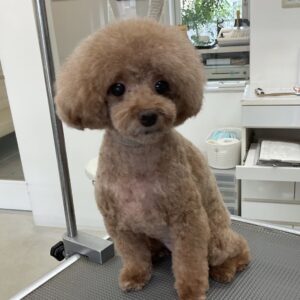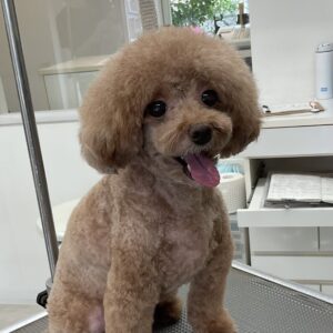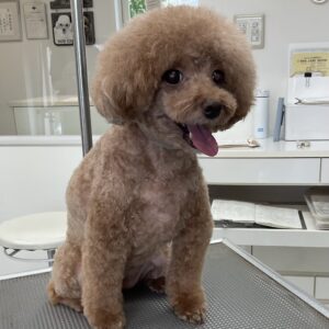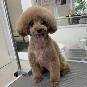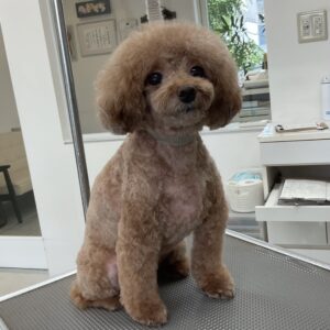 2ヶ月毎にカットコースをご利用のトイプードルのマロンちゃんは、体3㎜ショートマッシュ四肢細くのご注文です