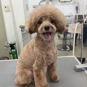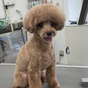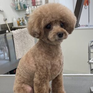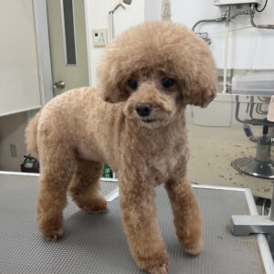 2ヶ月毎にカットコースをご利用のトイプードルのマロンちゃんは、体3㎜ショートマッシュ四肢細くのご注文です