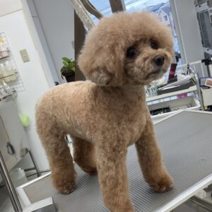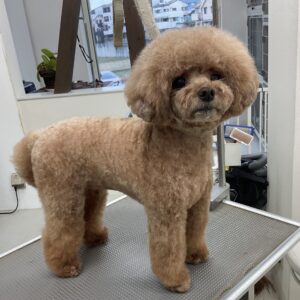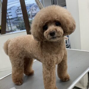 ヶ月毎にカットコースをご利用のトイプードルのマロンちゃんは、体3㎜ショートマッシュ四肢細くのご注文です