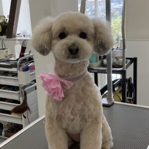 2ヶ月毎にカットコースをご利用のトイプードルのマロンちゃんは、体5㎜テディベア四肢細くのご注文です
