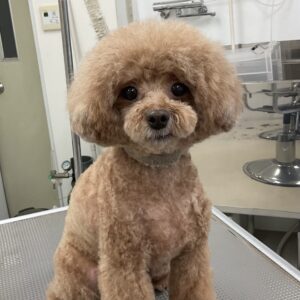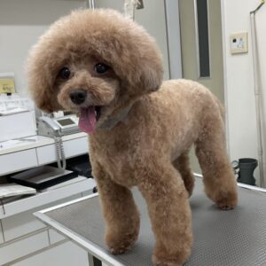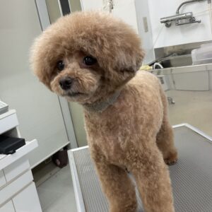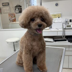 2ヶ月毎にカットコースをご利用のトイプードルのマロンちゃんは、体3㎜ショートマッシュ四肢細くのご注文です
