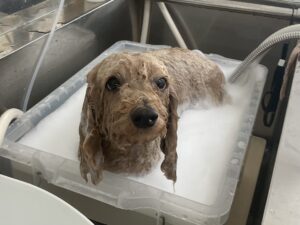 2ヶ月毎にカットコースをご利用のトイプードルのムーくんは、体5㎜テディベア四肢太くのご注文です