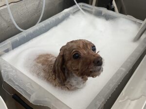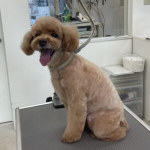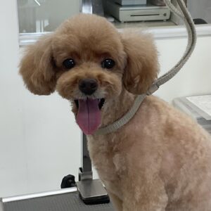 ⒈5ヶ月毎にオゾンマイクロナノバブル浴+歯磨きのカットコースをご利用のトイプードルのメルちゃんは、体5㎜四肢細く指先短くお顔はフェイスラインに沿って短くムスタッシュも小さく丸くのご注文です