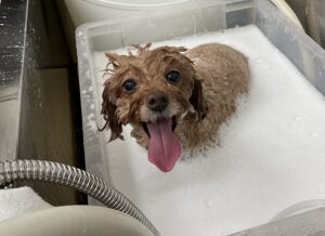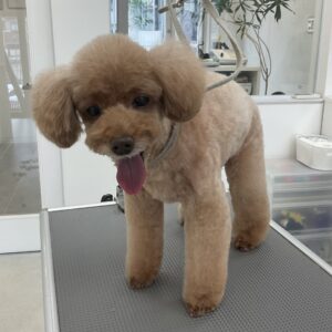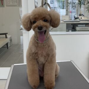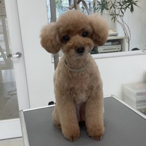 ⒈5ヶ月毎にオゾンマイクロナノバブル浴+歯磨きのカットコースをご利用のトイプードルのメルちゃんは、体5㎜四肢細く指先短くお顔はフェイスラインに沿って短くムスタッシュも小さく丸くのご注文です