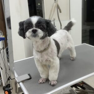 毎月オゾンマイクロナノバブル浴+足先バリカン+歯磨きのカットコースをご利用のミックス犬(マルチーズ×シーズー)のモコちゃんは、体3㎜四肢8㎜お顔も短く丸くのご注文です