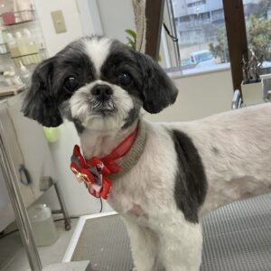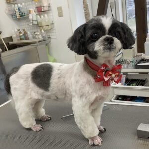 毎月オゾンマイクロナノバブル浴+足先バリカン+歯磨きのカットコースをご利用のミックス犬(マルチーズ×シーズー)のモコちゃんは、体3㎜四肢8㎜お顔も短く丸くのご注文です