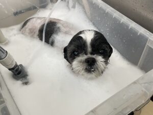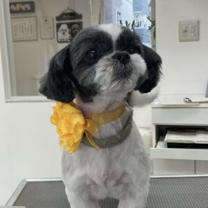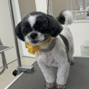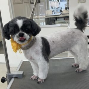 毎月オゾンマイクロナノバブル浴+足先バリカン+歯磨きのカットコースをご利用のミックス犬(マルチーズ×シーズー)のモコちゃんは、体3㎜四肢8㎜お顔も短く丸くのご注文です