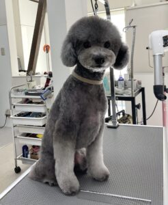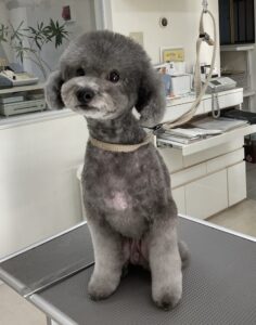 2ヶ月毎にカットコースをご利用のトイプードルのモナくんは、体3㎜トップと耳をつなげてテディベア四肢細くのご注文です