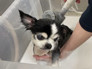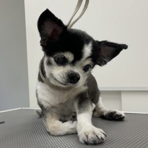 2ヶ月毎にオゾンマイクロナノバブル浴+炭酸泉浴のカットコースをご利用のチワワの17歳モモちゃんは体2㎜全バリのご注文です