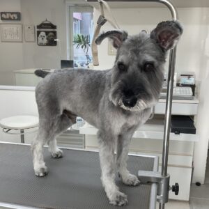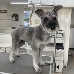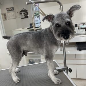 毎月カットコースをご利用のミニチュアシュナウザーのヤマトくんは、体5㎜全バリお顔は細くテディベアのご注文です