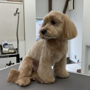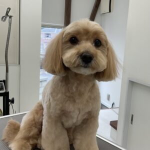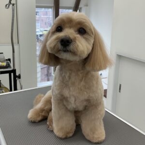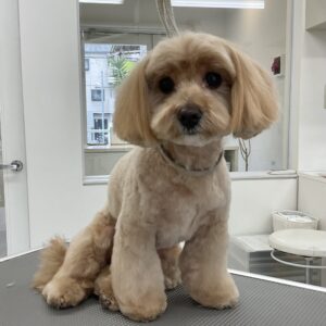 2ヶ月毎にカットコースをご利用のミックス犬(マルチーズ×トイプードル)のライムくんは、体6㎜テディベア丸く四肢細めのベルボトムのご注文です