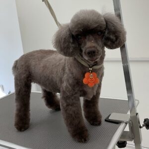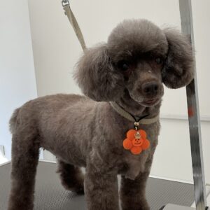 T・プードルのラズリちゃんは体3㎜顔バリ、四肢細く、耳なり丸くのカットコースをご利用です