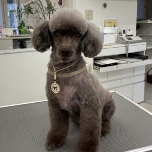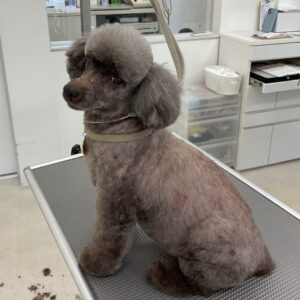 T・プードルのラズリちゃんは体3㎜顔バリ、四肢細く、耳なり丸くのカットコースをご利用です
