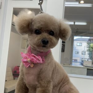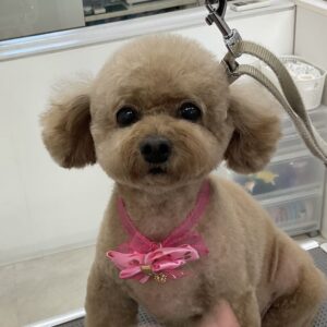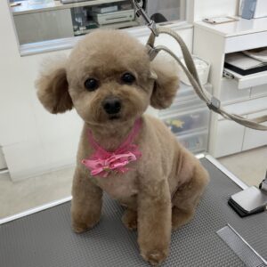 T・プードルのルチルちゃんは、体3㎜テディベアマズルは丸く四肢細くお耳も短くのカットコースをご利用です。