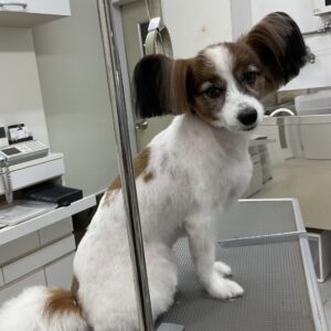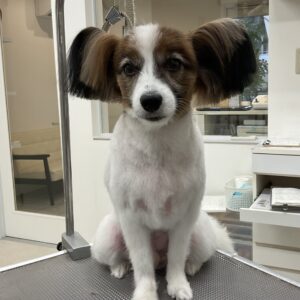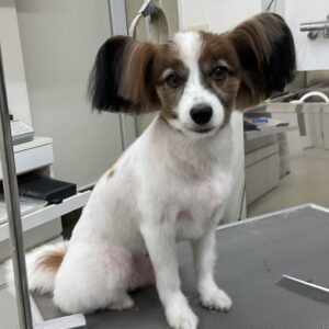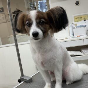 毎月カットコース+歯磨きをご利用のミックス犬(パピヨン×トイプードル)のルーくんは、体6㎜お尻桃尻のご注文です