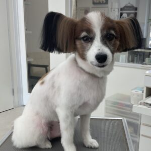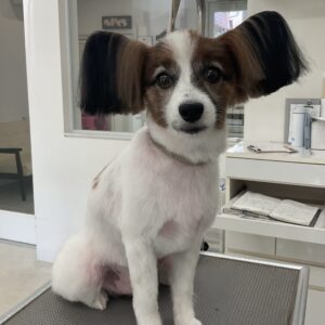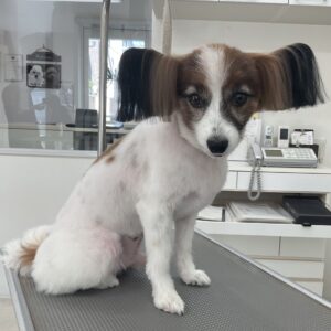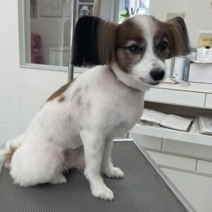 毎月カットコース+歯磨きをご利用のミックス犬(パピヨン×トイプードル)のルーくんは、体6㎜お尻桃尻のご注文です