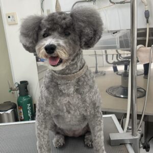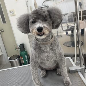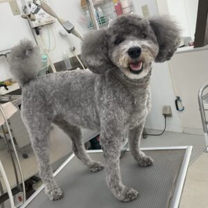 2ヶ月毎にカットコースをご利用のトイプードルのレイちゃんは、体3㎜全バリお顔も短くテディベアのご注文です