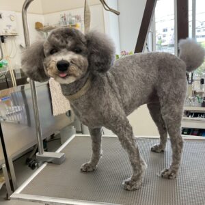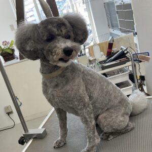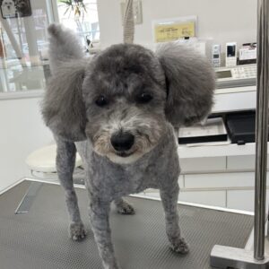2ヶ月毎にカットコースをご利用のトイプードルのレイちゃんは、体3㎜全バリお顔も短くテディベアのご注文です