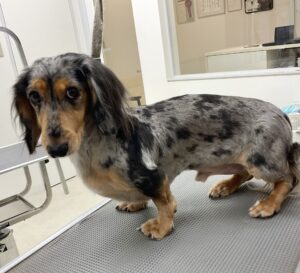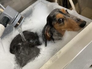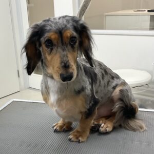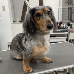 2ヶ月毎にオゾンマイクロナノバブル浴のカットコースをご利用のミニチュアダックスのレオくんは、体3㎜全バリのご注文です