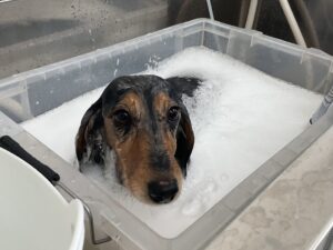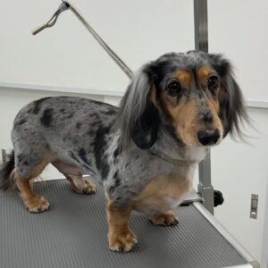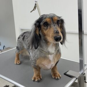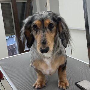 2ヶ月毎にオゾンマイクロナノバブル浴のカットコースをご利用のミニチュアダックスのレオくんは、体3㎜全バリのご注文です