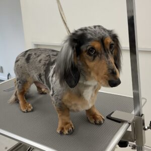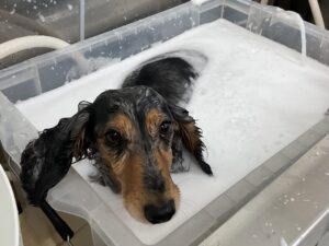 2ヶ月毎にオゾンマイクロナノバブル浴のカットコースをご利用のミニチュアダックスのレオくんは、体3㎜全バリのご注文です