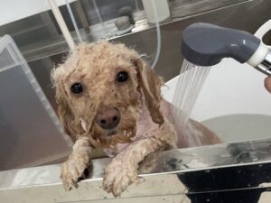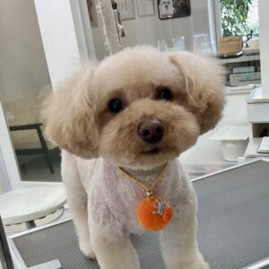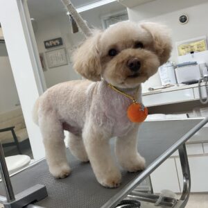 毎月オゾンマイクロナノバブル浴+炭酸泉浴+歯磨きのカットコースをご利用のトイプードルのロメロくんは、体2㎜テディベアのご注文です