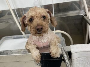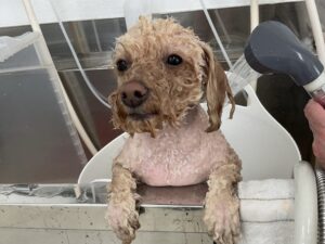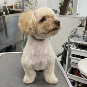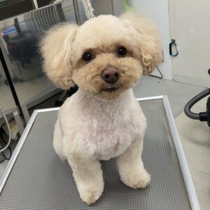 毎月オゾンマイクロナノバブル浴+炭酸泉浴+歯磨きのカットコースをご利用のトイプードルのロメロくんは、体3㎜テディベアのご注文です