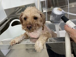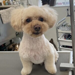 毎月オゾンマイクロナノバブル浴+炭酸泉浴+歯磨きのカットコースをご利用のトイプードルのロメロくんは、体3㎜テディベアのご注文です
