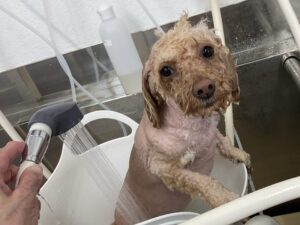 毎月オゾンマイクロナノバブル浴+炭酸泉浴+歯磨きのカットコースをご利用のトイプードルのロメロくんは、体2㎜テディベアのご注文です