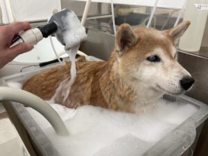 マイクロナノバブル浴のシャンプーコースをご利用の柴の安寿ちゃんです