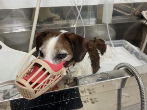 マイクロナノバブル浴のシャンプーコースをご利用のジャックラッセルの小太朗くんです