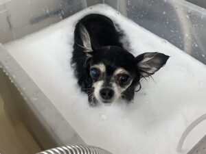 ⒈5ヶ月毎にオゾンマイクロナノバブル浴のシャンプーコースをご利用のチワワの朱莉(あかり)ちゃんです
