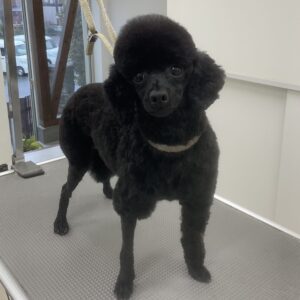2ヶ月毎にご来店のトイプードルの空(くう)くんは、顔バリ体8㎜の羊カット尾っぽはライオンのご注文です。
